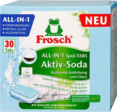 Mosogatógép tabletta, 30 db, FROSCH "All-in-1", aktív szóda